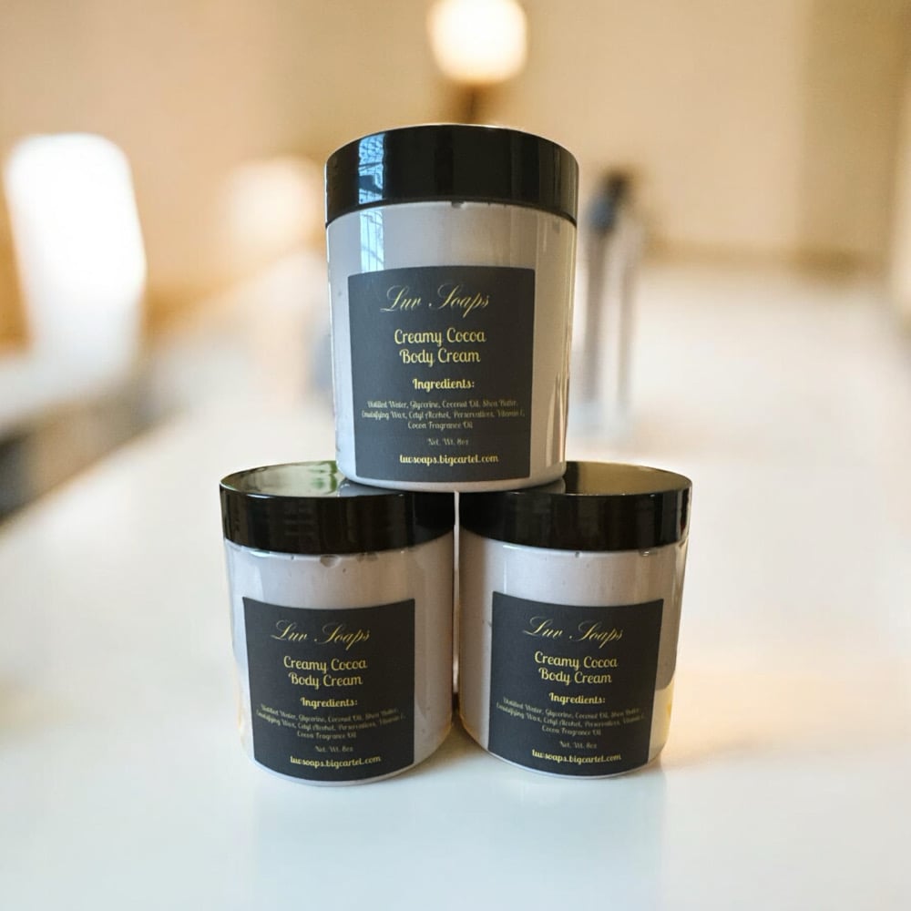 Wrap your skin in pure indulgence with our Creamy Cocoa Body Lotion, a decadent blend designed to deeply nourish and soften. This rich, velvety formula is infused with luxurious cocoa butter that melts effortlessly into the skin, restoring moisture and leaving a silky, radiant finish. The warm, sensual aroma of cocoa lingers delicately, creating a soothing, spa-like experience with every use.