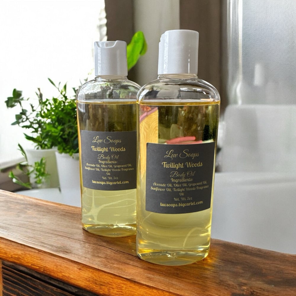 Ingredients: Avocado Oil, Olive Oil, Grapeseed Oil, Sunflower Oil and Twilight Woods Fragrance Oil.